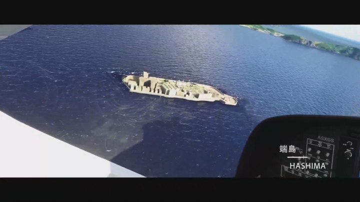 フライトシミュレーターに軍艦島の上空を飛んだ