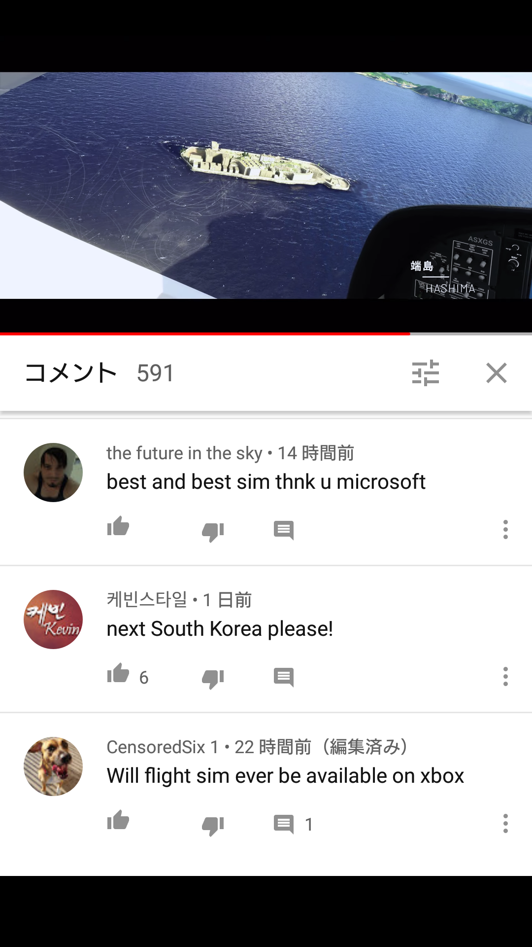 마이크로소프트(이하 MS)가 어제(24일) 도쿄게임쇼 쇼케이스에서 <MS 플라이트 시뮬레이터 2020>(이하 플심 2020) 신규 트레일러에 나가사키의 군함도(端島)를 포함시킨 것에 입장을 밝혔다. 군함도는 아래 트레일러의 1분 45초 구간부터 군함도가 3초 가량 등장한다.