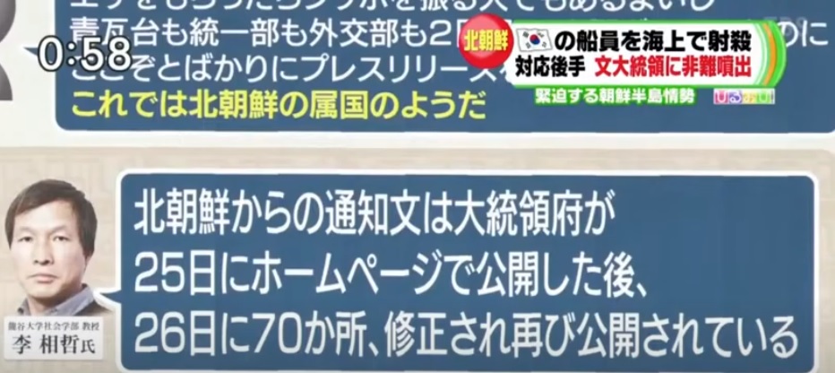 http://www.chosunonline.com/site/data/html_dir/2020/09/29/2020092980118.html国連人権報告者「金委員長の通知文は謝罪でない、生命軽視の態度」