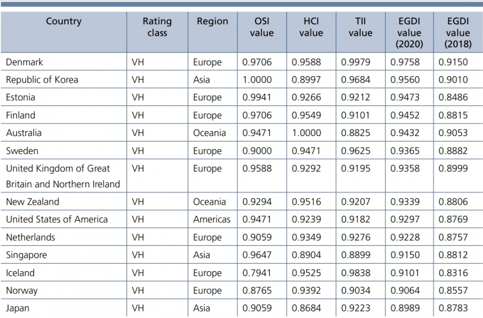 大韓民国、シンガポール、日本はアジアで最高の業績を上げており、それぞれのEGDIランキングは2、11、14であり、電子政府開発の世界的リーダーの1つです。