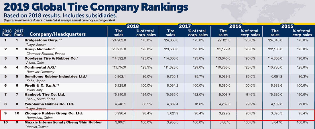 1.ブリジストン (24,982.0) 5.Sumitomo(6,962.1) > 7.Hankook (5,810.0 Korea)