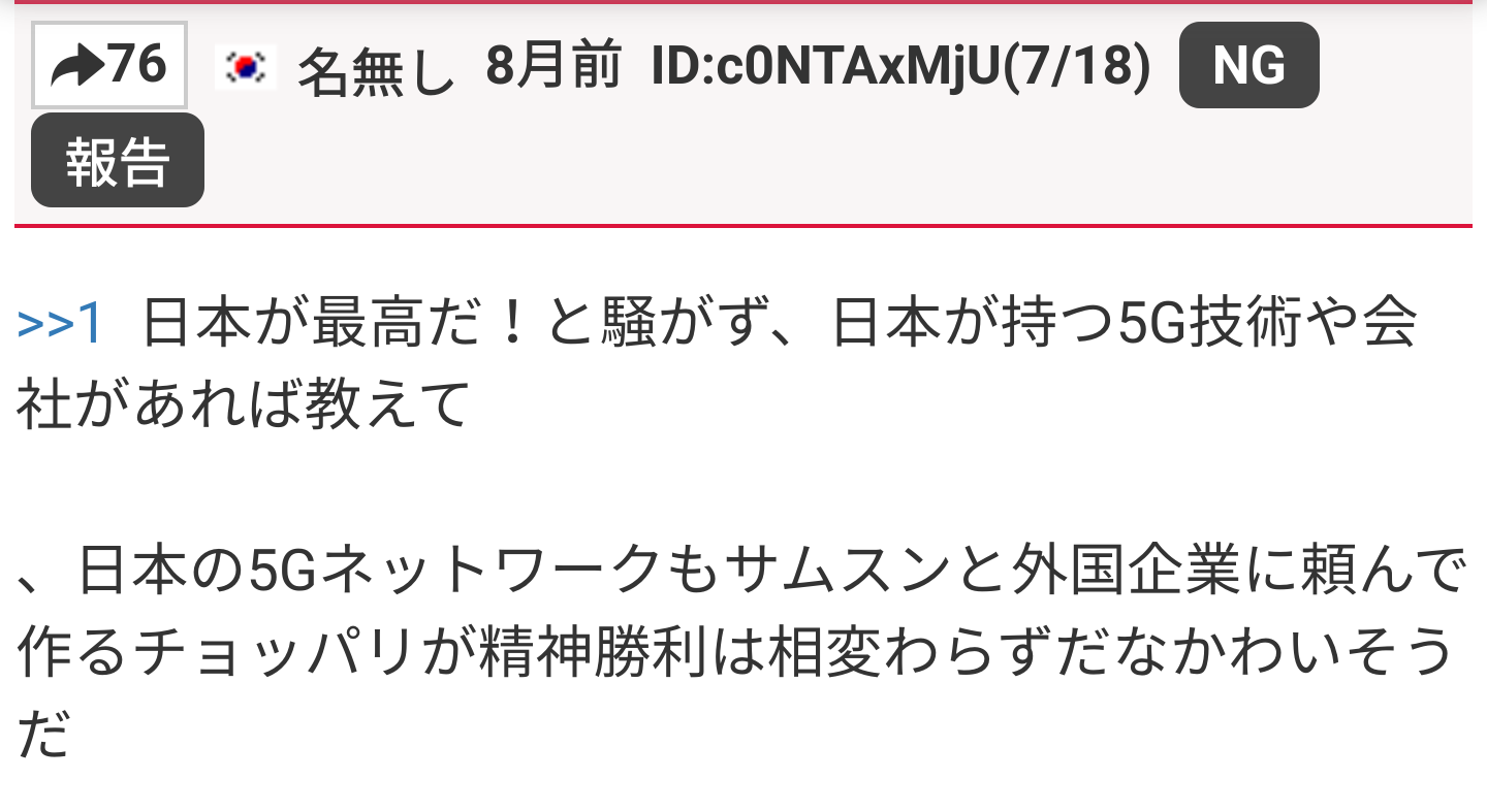 それがどれだけ滑稽なことなのか、どうやったら理解してくれるのか。韓国も日本に5Gが普及して何年かしたら使えるようになるよ