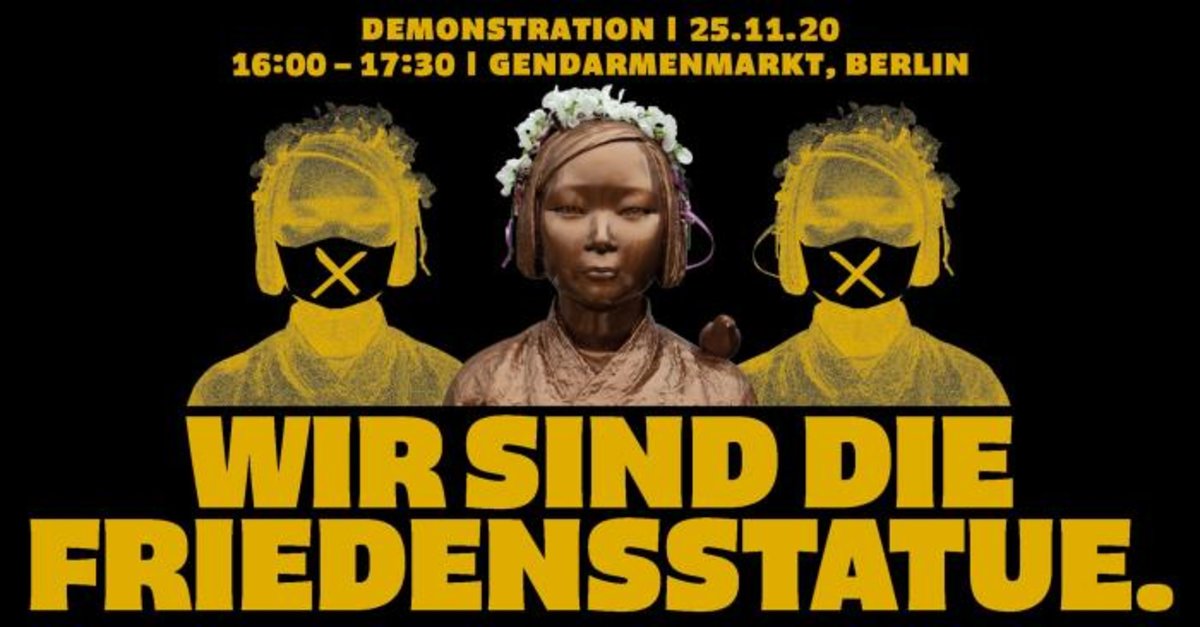 「女性に対する暴力撤廃の国際デー」に当たる25日、ドイツ・ベルリンの市民団体が慰安婦像の前で集会を行った。