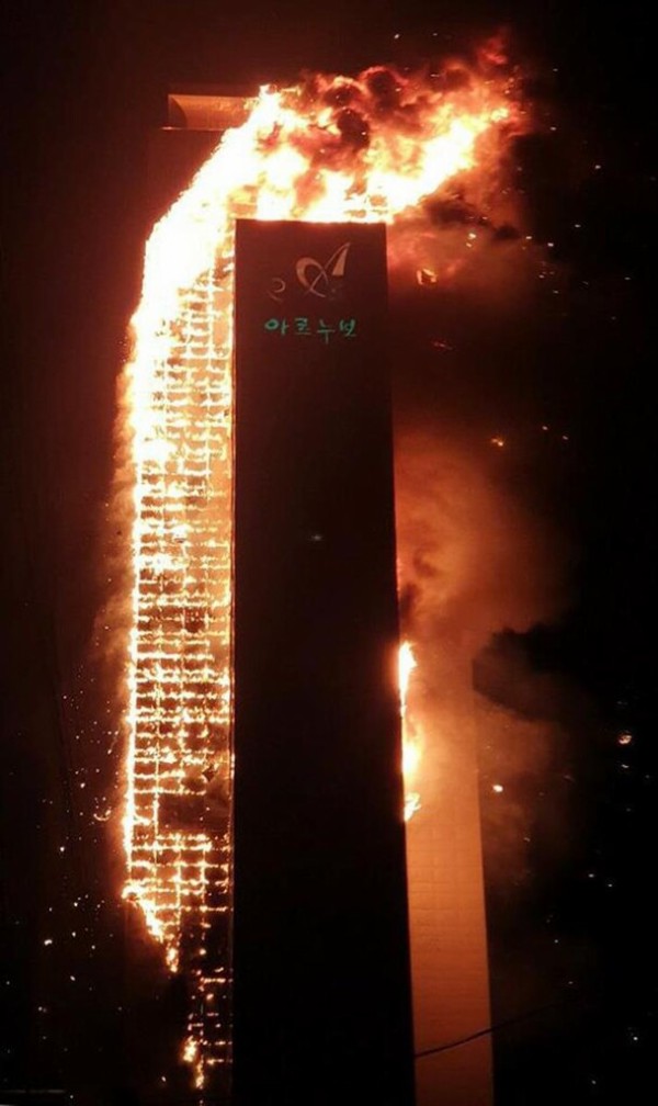 韓国蔚山で高層ビル火災、はしご車も届かず消火難航