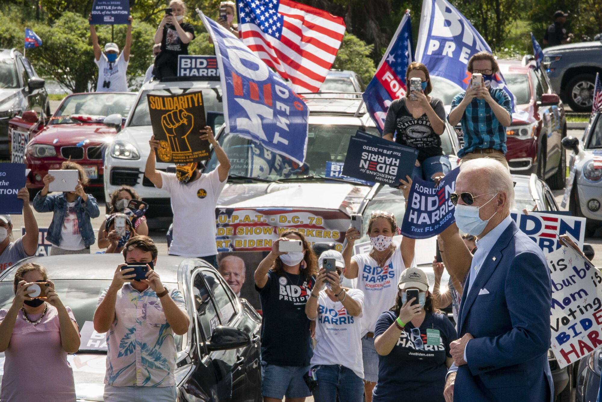 バイデンはオバマを呼びながら見物客わずか数百人 ("hundreds")。