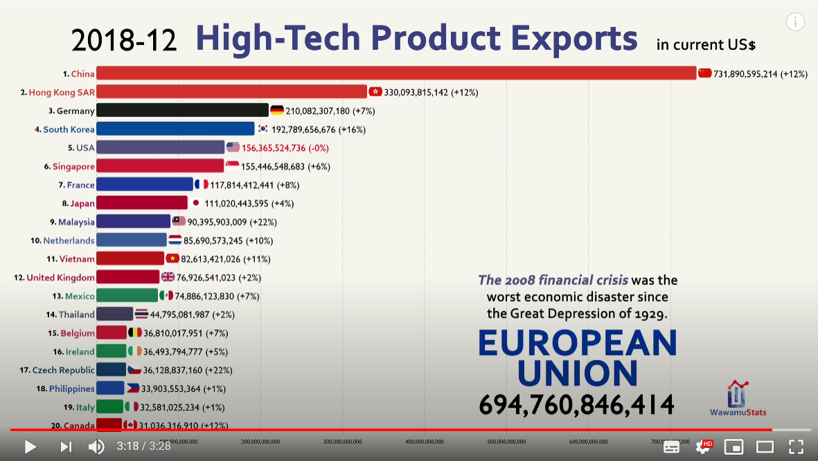 전세계 하이 테크 수출 순위