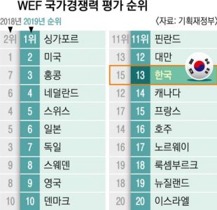 또한, 우리나라는 국가경쟁력 평가에서 일본을 크게 앞질렀다. 지난 6월, 스위스 국제경영개발연구원(IMD)이 발표한 ‘국가경쟁력 평가’ 결과 63개국 중에서 우리나라가 23위로 34위인 일본을 앞질렀다.