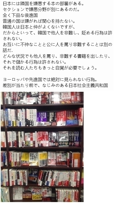それとも韓国では「日本嫌い」「NO JAPAN」と行動したらちゃんと「日本差別」だと罰せられる社会なのか?