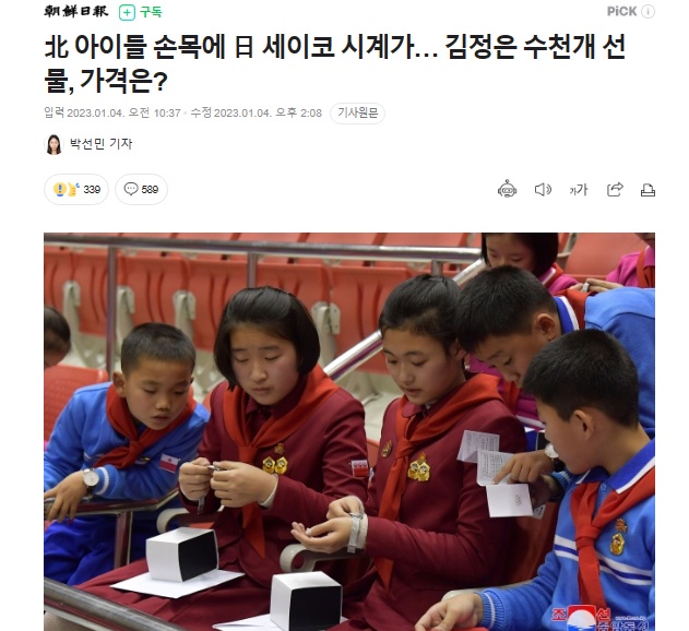 北朝鮮の金正恩(キム・ジョンウン)国務委員長が朝鮮少年団代表への新年のプレゼントとして贈った腕時計が日本ブランドのセイコーの製品であることが分かった。
