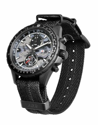 陸上自衛隊「第一空挺団」モデルは、傷から守り光の反射を防ぐガンメタルPVDでコーティングしています。また、砲弾発射地点までの距離を計測するテレメーター、方位計、カウントダウンベゼル機能を装備しています。
