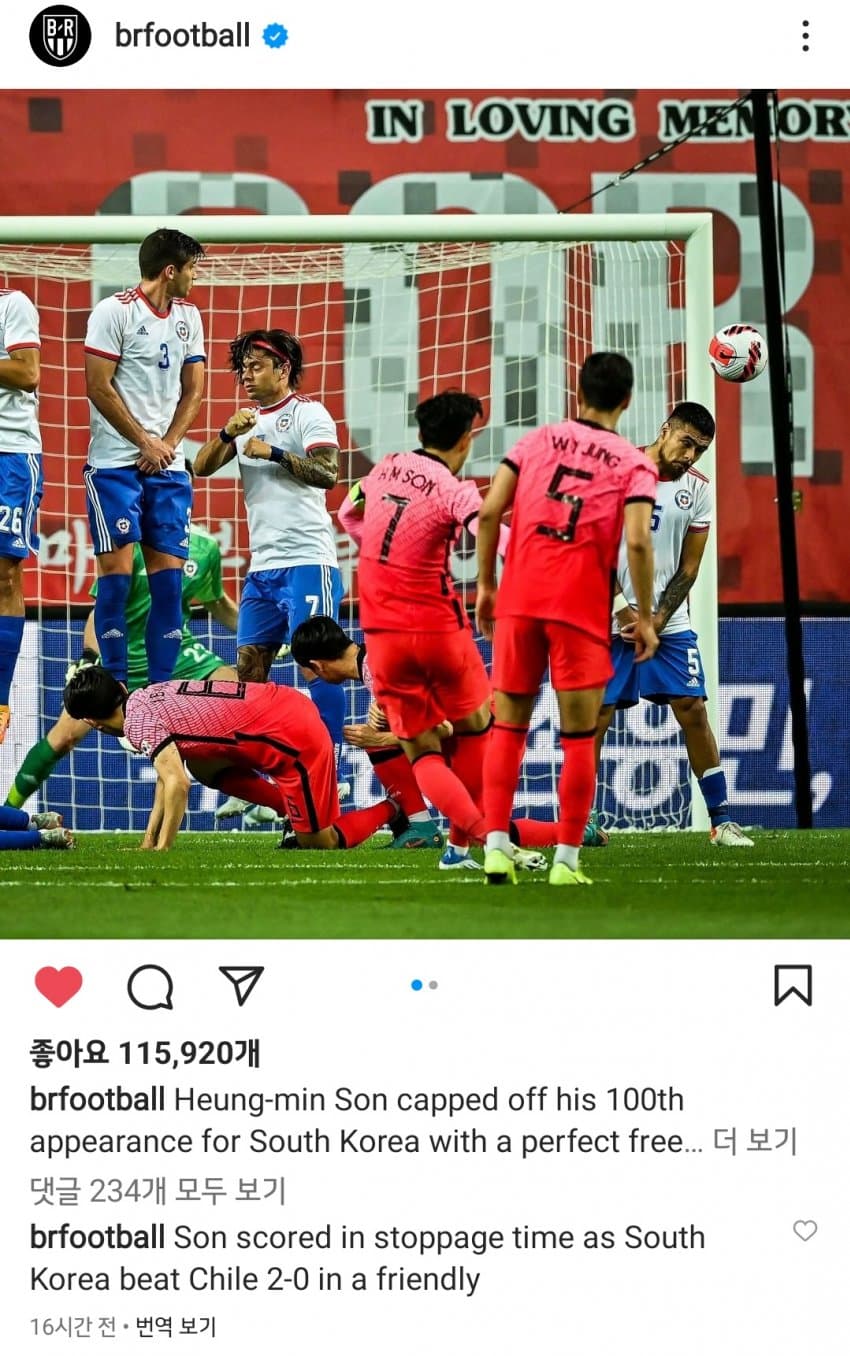 서로 싸우는 칠레선수를 중재하는 SON>>986