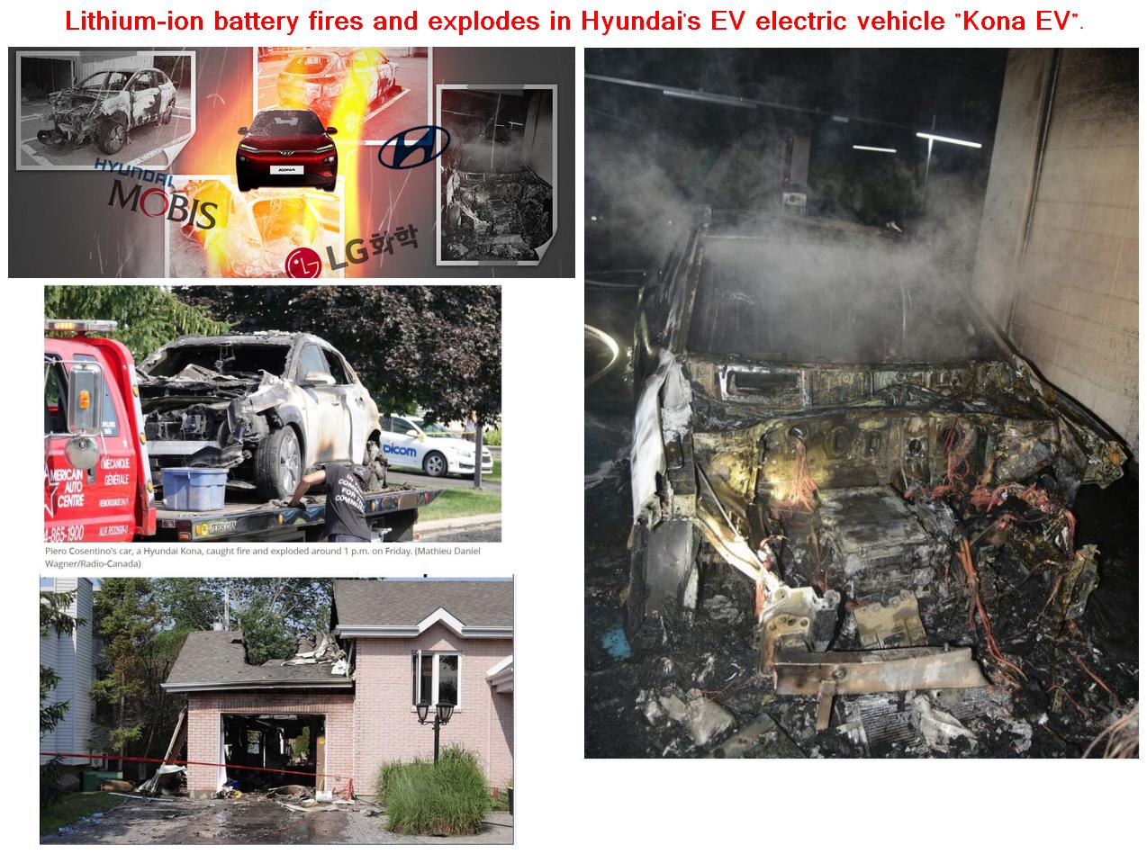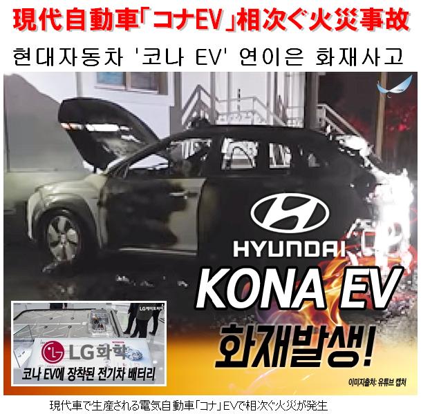 Hyundai Motor's EV electric vehicle "Kona EV" is experiencing a series of fires from lithium-ion batteries.