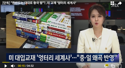 米大学進学適性試験(SAT)と科目別試験のAP教材に、韓半島がこれまでのほとんどは中国の領土だったと表記されている事実がJTBC取材の結果、明らかになりました。 中国が唐の時期に属国になり、日本と江華島条約(=日朝修好条規)を結んだ1876年に中国から独立をしたというのです。