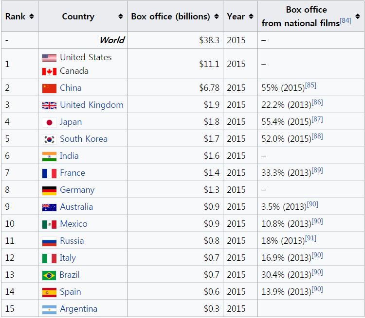 98)露梁:死の海 (韓国)韓国の国内映画市場は、少ない時で日本市場の約半分、多い時で約7割くらいを推移しているが、海外売上では既に10倍以上の差がついてしまっている。