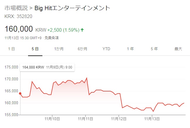 韓国人しか買わない株とかwBTS株が凄い勢いで落ちとるがな。