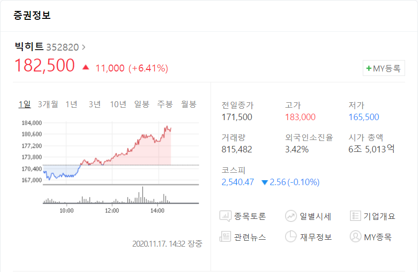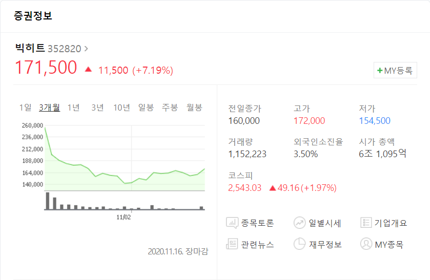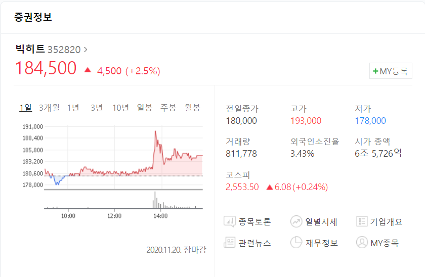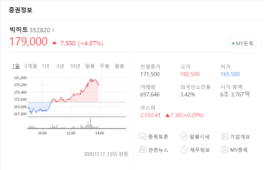 이런 바보같은 댓글을 작성했을때, 빅히트의 주식을 샀다면, 50%의 수익률을 낼 수 있었다.