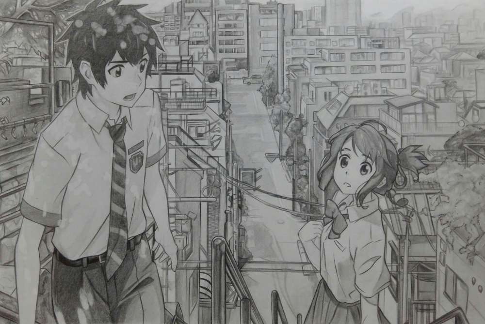 細かい書き込みや遠景の少しずつ薄くなる所など苦労したんじゃないですか?オリジナルと重ね合わせをしましたが、背景までマジで書いてますよ。