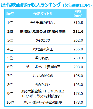 https://twitter.com/kimetsu_off/status/1336143465701203970そろそろ千と千尋の神隠しを抜きそうね。
