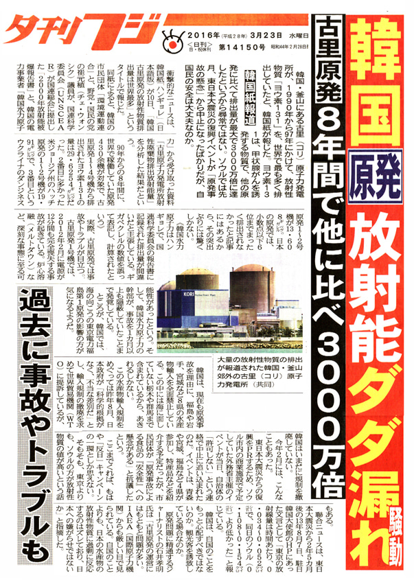 月城原発近辺住民の体内からトリチウムが検出されたとのレポートもあるので、韓国人は日本よりもそちらを気にすべし。韓国は嘘ついてると思うよw