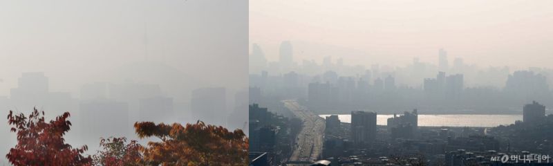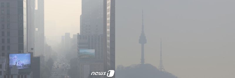 【NEWSIS】韓国のほぼ全域にPM2.5などの微小粒子状物質注意報が発令された10日午前、南山から見たソウル中心部の空はかすんでいた。環境部は10日6時から21時まで、ソウル市・仁川市・京畿道・忠清南道に発令された微小粒子状物質危機警報の段階である「関心」を維持することを発表した。