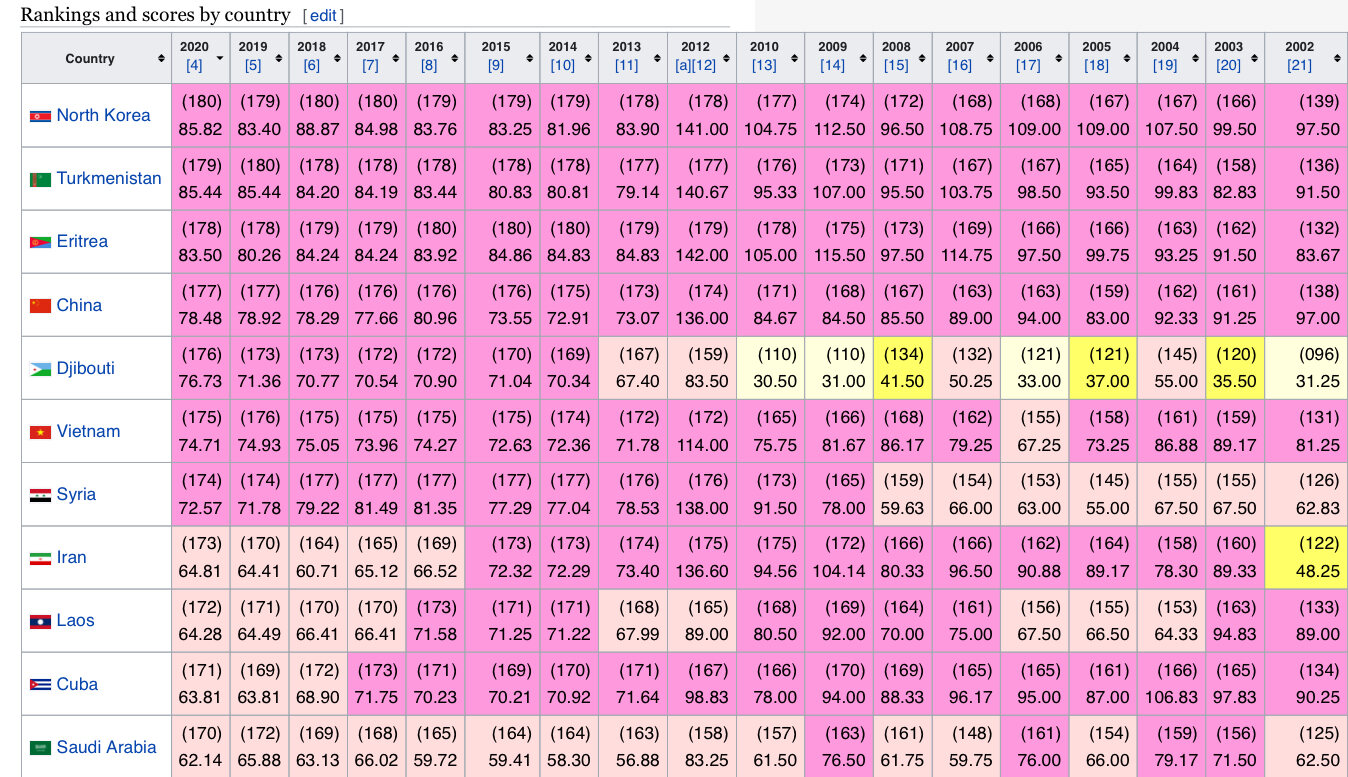 シリアやサウジアラビアよりも下位である点に要注目。