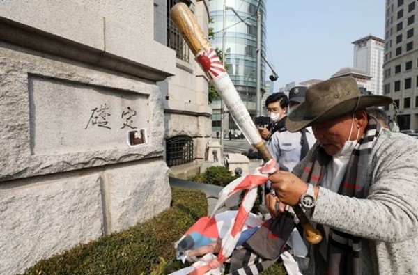 「すぐに撤去しろ」…韓国銀行の伊藤博文直筆礎石にバットを持って飛び込んだ市民団体=韓国の反応