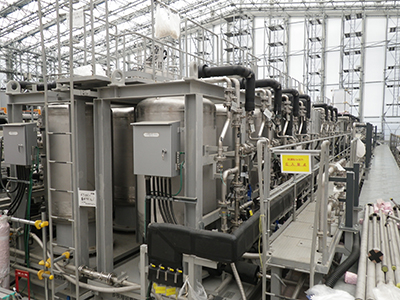 汚染水に含まれる放射性物質によるリスクを低減させるため、まずは、セシウム吸着装置を使い、汚染水に含まれる放射性物質の大部分を占めるセシウムとストロンチウムを重点的に取り除きます。