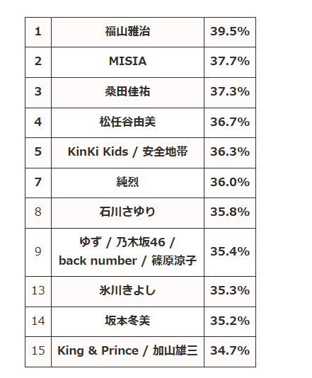 第73回NHK紅白歌合戦 - 歌手別視聴率ランキングTOP15