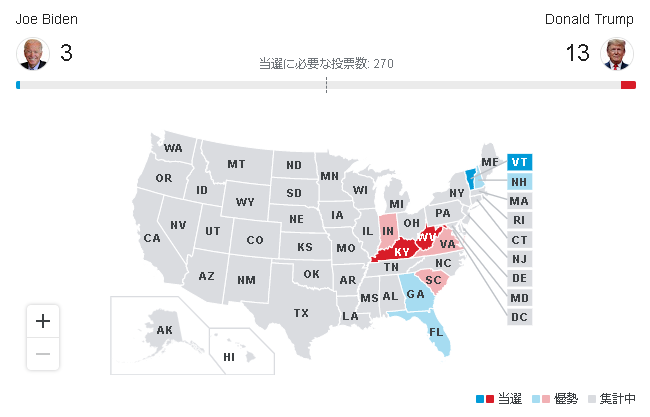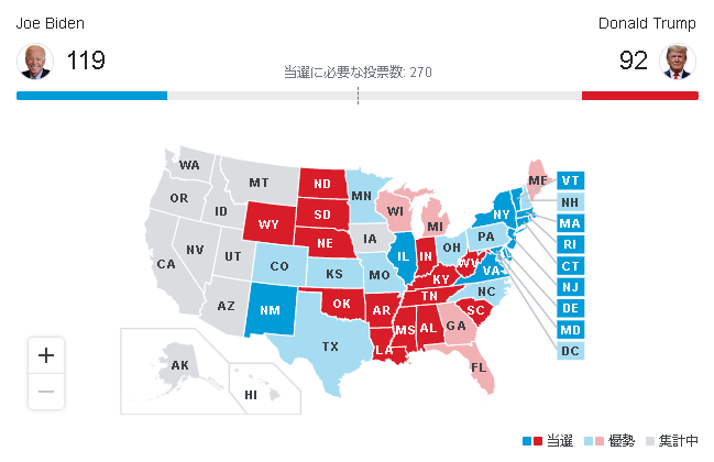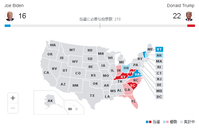 いよいよ明日大統領選挙結果判明 日本時間で水曜日午前中くらい?
