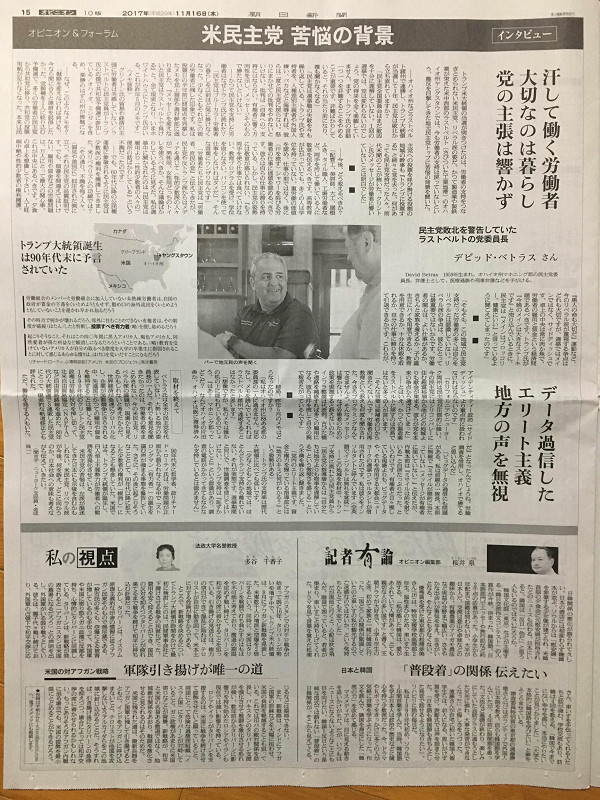 面白いものをお持ちですね....インタビュー 米民主党、苦悩の背景 デビッド・ベトラスさん