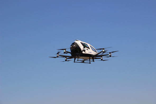 一方、この日の行事では4月にオーストリアで試験飛行に成功した中国の「EHang216」がデモ飛行した。米国のリフトエアクラフトの「ヘキサ」は実際の機体を展示した。