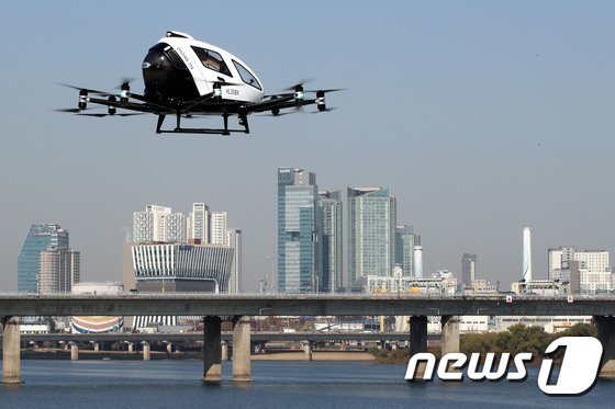 今月11日、韓国で初めて人が乗ることができるドローンタクシーがソウル汝矣島(ヨイド)の上空を7分間飛行した。ソウル市と国土交通部が主催した「都心航空交通(UAM・Urban Air Mobility)ソウル実証行事」でだ。
