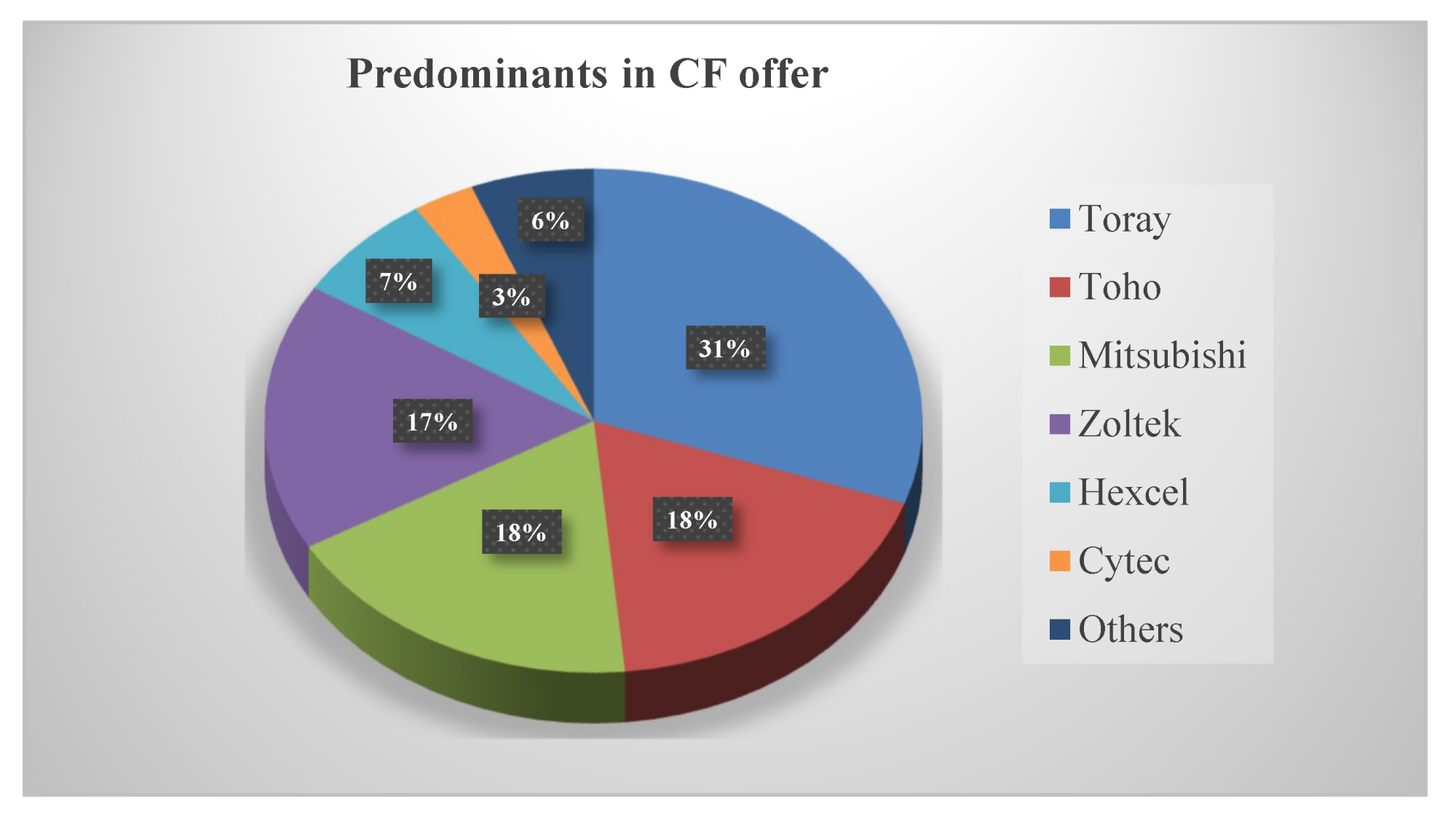 1.Toray(31%) 2.Toho (Teijin18%) 3.Mitsubishi Rayon(18%) > 韓国(ランク外)