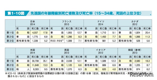 画像:先進国の年齢階級別死亡者数および死亡率(15~34歳)