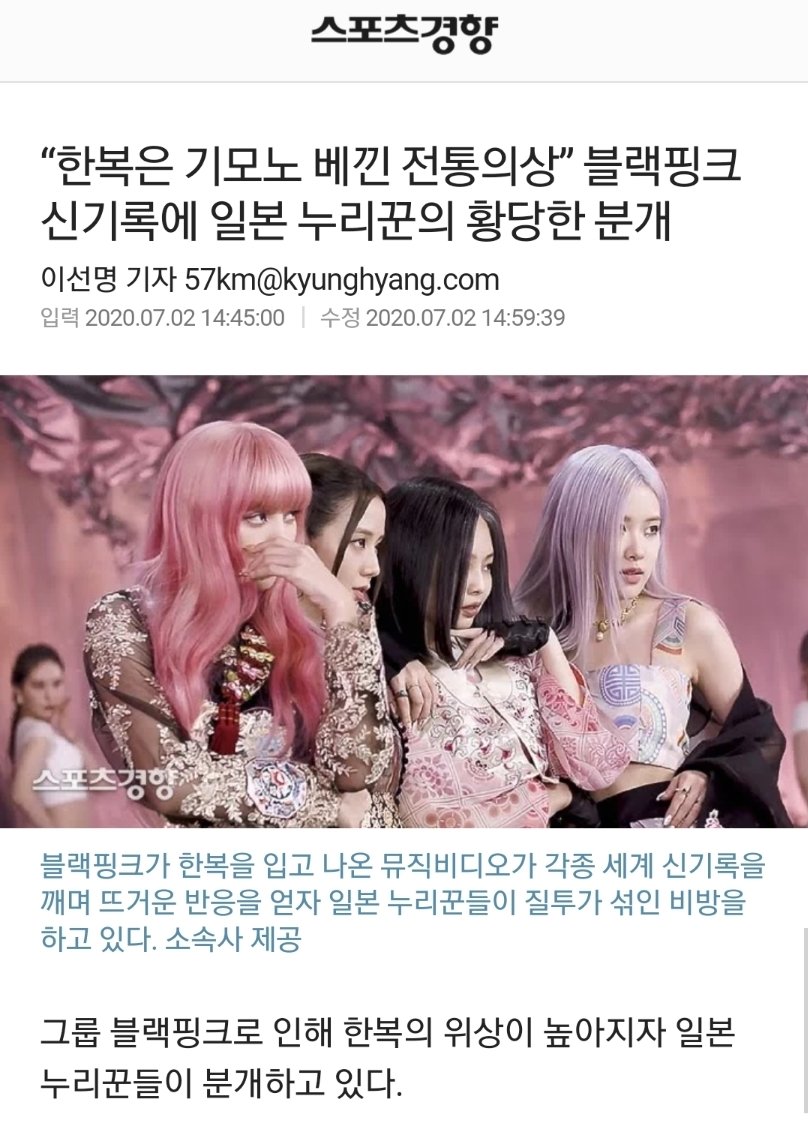 日本のファンたちはBLACKPINKが着ている韓服に対して露骨に敵対感を表わした。自分たちの伝統衣装である着物と比較して韓服を一方的に貶す事もした。