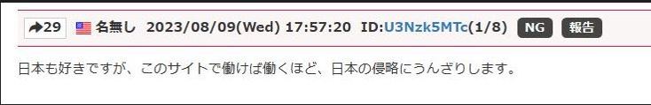 あなたの理屈に拠れば、彼は、日本の女性を強姦すると言う、自らの性癖、犯罪願望を隠す事なく掲示板に書き込む、捜査対象者です。- 200