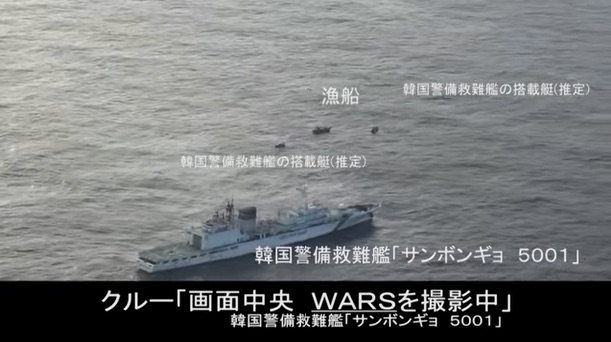現場に到着した日本の哨戒機は、レーダーに捉えられた物体が韓国海軍の広開土大王艦(基準排水量3200トン)と海洋警察庁所属の巡視船サムボン号(5000トン)であることを把握した。韓国の駆逐艦はここで一体何をしていたのだろうか。日本の哨戒機は、広開土大王艦の高度150メートル、距離500メートル地点まで低空飛行し、様々な角度から現場の様子を撮影した。撮影を終えて遠ざかった頃、隊員たちは機器の警報音を通じて機体が広開土大王艦の照射したと推定されるレーダーの電波に当たったことを直感した。事実ならば、韓国が友好国である日本に対し、してはならない「敵対行為」を行なったことになる。