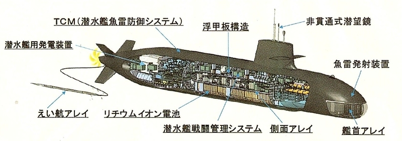 従来からの改良点はいくつもありますが、最も大きな違いはリチウムイオン電池搭載のために艦内部設計が最適化された事です。これにより大鯨クラスは先行してリチウムイオン電池を搭載された蒼龍クラス11番艦、12番艦と比較しても、バッテリー駆動時の作戦行動範囲が更に拡大したと言われます。>>24