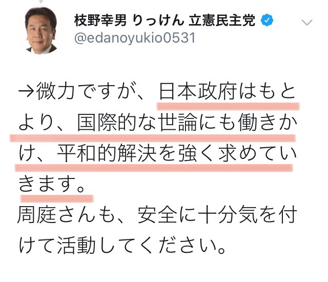 立憲民主党の枝野幸男は、何かコメント出したのか?