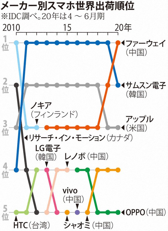 1위는 애플이었다. 애플은 9년 연속 상반기 1위를 차지했다고 MMRI는 덧붙였다. 뒤이어 ▲2위 샤프 ▲3위 삼성 ▲4위 후지쯔 커넥티드 테크놀로지스 ▲5위 소니 모바일 커뮤니케이션즈가 차지했다.