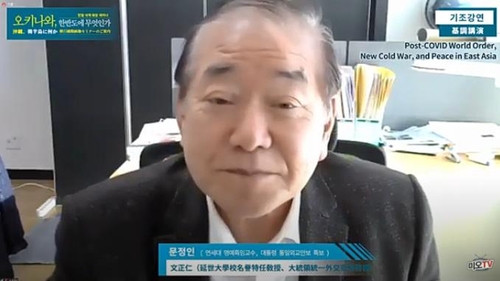 韓国の文正仁(ムン・ジョンイン)大統領統一外交安保特別補佐官は26日、米国と中国の対立により「新冷戦」の状態になりつつあると指摘した上で、「韓国と日本が協力すれば米中を仲裁できる空間が生まれるだろう」との見方を示した。沖縄と朝鮮半島をテーマに自由言論実践財団が主催したオンライン国際セミナーの基調演説で述べた。