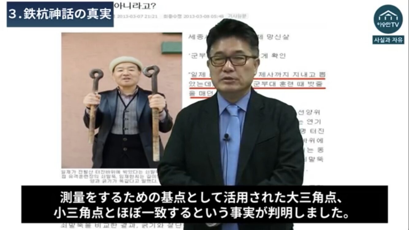 「大三角点が日本が韓国国土の血脈を断つために打った鉄の杭だという噂が流れたため、村の住民たちが放っておくわけがなかった。 そっくり掘り起こしてハンマーでぶち壊してあちこちに散らかした。測量技師は、『後ろを向くと掘り返してしまうね』と舌打ちした。」