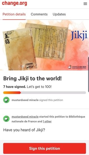 (ソウル=聯合ニュース)ワンギルファン記者=サイバー外交使節団バンクはフランス政府に「「韓国人の魂」である直指心体要節(直)を返してください」と呼びかけているグローバルキャンペーンを27日開始した。