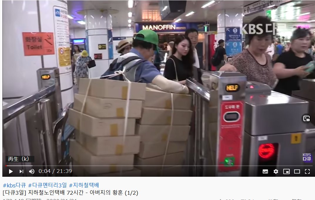 KBSニュースのビョン·ジンソクです。無料の地下鉄を利用して宅配をする韓国の老人達のドキュメンタリーを観たことがある