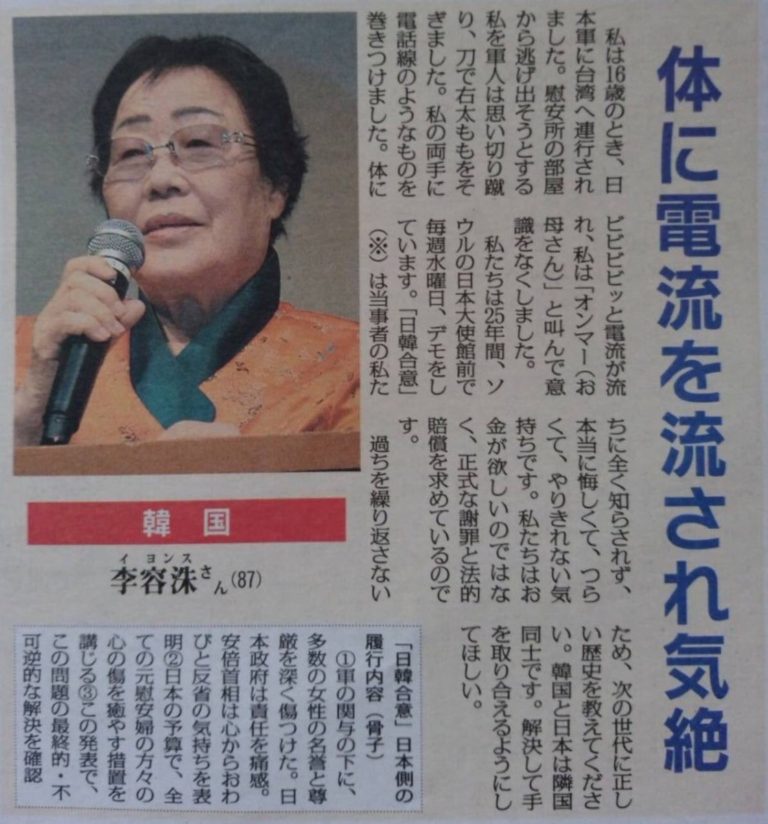 太ももの傷や電流の痕は残ってるんだろうな。慰安婦を買った朝鮮兵や朝鮮人業者は登場するの?
