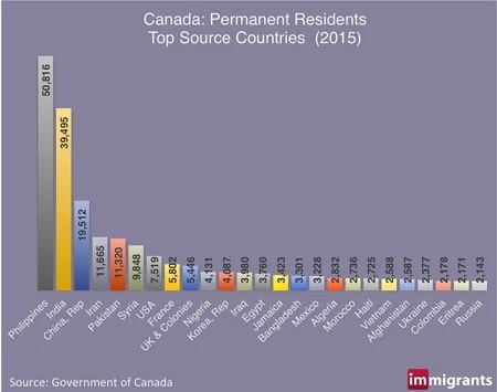 カナダへの移民者のうち最も多いのがフィリピン人(年間約5万人)、次がインド人(約4万人)で、中国人は3位の約2万人。ただ地域によって偏りがある>>19 >>20