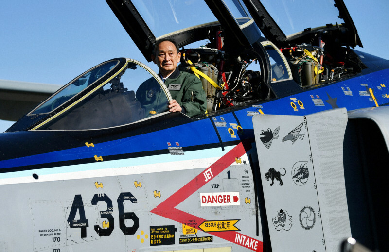 菅義偉首相は28日、航空自衛隊入間基地(埼玉県狭山市など)で開かれた航空観閲式に出席した際、今年度末で全て退役するF4戦闘機の操縦席に座り、かしこまった表情で写真撮影に応じた。