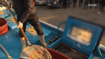 >慶南魚類養殖協会は先月27日、ソウル汝矣島(ヨイド)の集会で、政府の日本産活魚輸入に反対してブリ、真鯛を床に投げて窒息死させる集会を開いた。