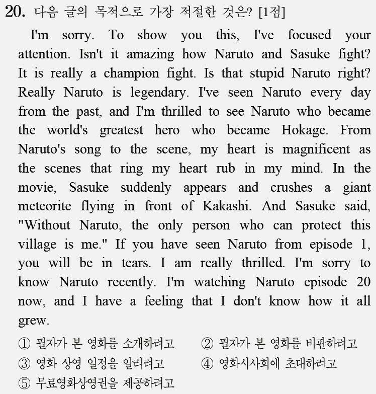 まじめな試験にNARUTOを持ってくるところがバカっぽい。>>15