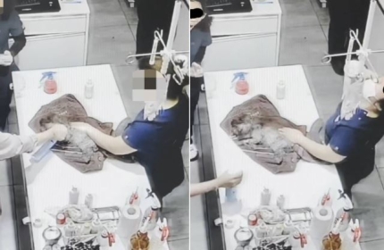愛犬の飼い主AさんはCCTVの写真を公開した。 写真の中には医療陣が子犬の顔にファブリーズを噴射する姿が写っている。